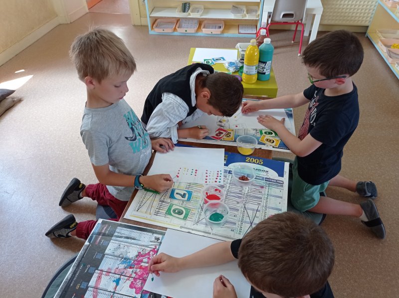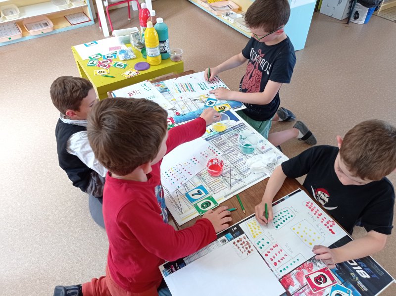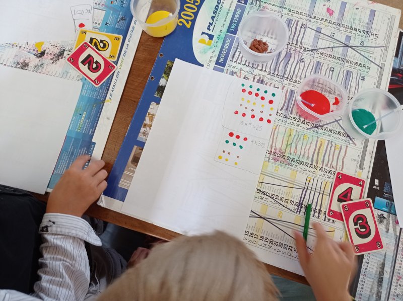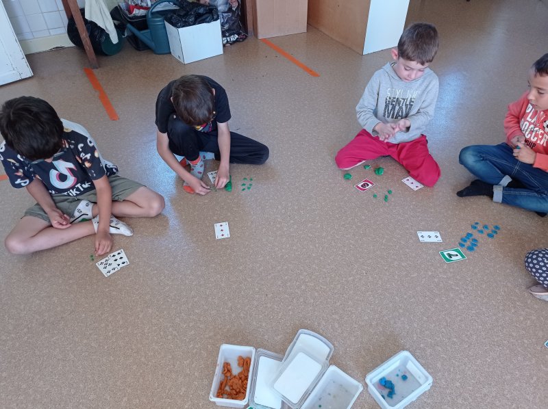 Cette semaine, les CP ont appris à multiplier !  Pour comprendre le sens de la multiplication, on manipule en faisant plusieurs paquets/groupes identiques :