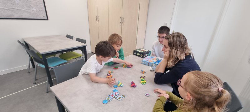Ce matin, nous sommes allés à la ludothèque. Ce fut l’occasion de jouer librement dans la salle collective. Aussi, nous avons découvert de nouveaux jeux de société grâce à Pauline et Amélie.
