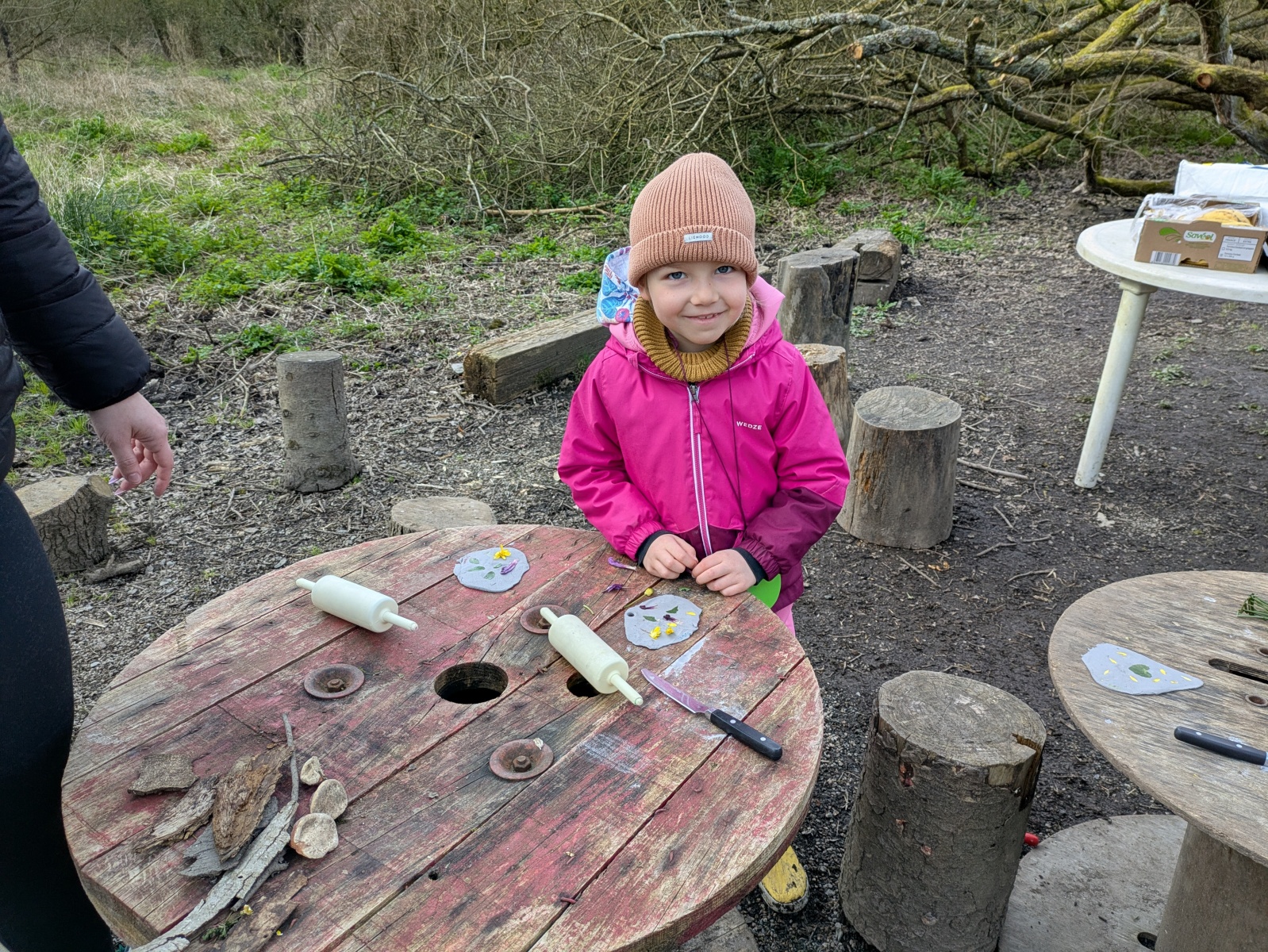 • fabrication d’une petite décoration avec de la pâte autodurcissante et les éléments de la nature