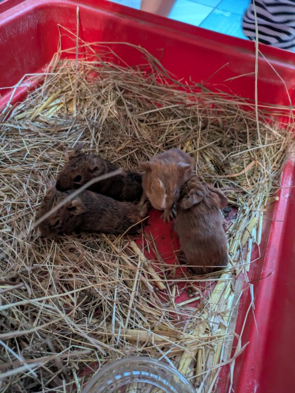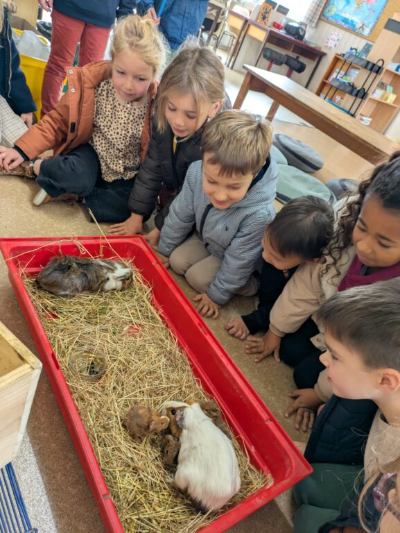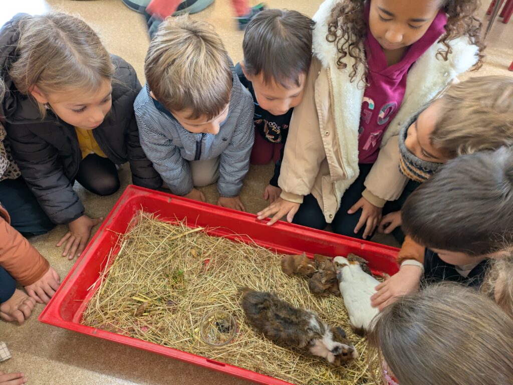 Depuis octobre, nous avons accueilli Blanchette et Noisette, 2 cochons d’Inde, à l’école. Le 3 novembre, nous avons eu la belle surprise d’accueillir 4 bébés cochons d’Inde. Nous nous occupons bien de cette petite tribu. D’ici 3-4 semaines, les petits bébés pourront se séparer de leur maman. Si certains sont intéressés pour les adopter, n’hésitez pas à revenir vers nous.
