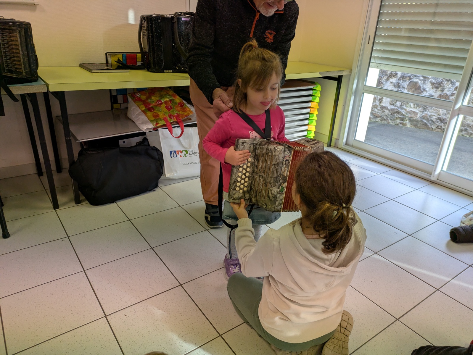 • découverte de l’accordéon. Un grand merci à nos 2 papis musiciens.