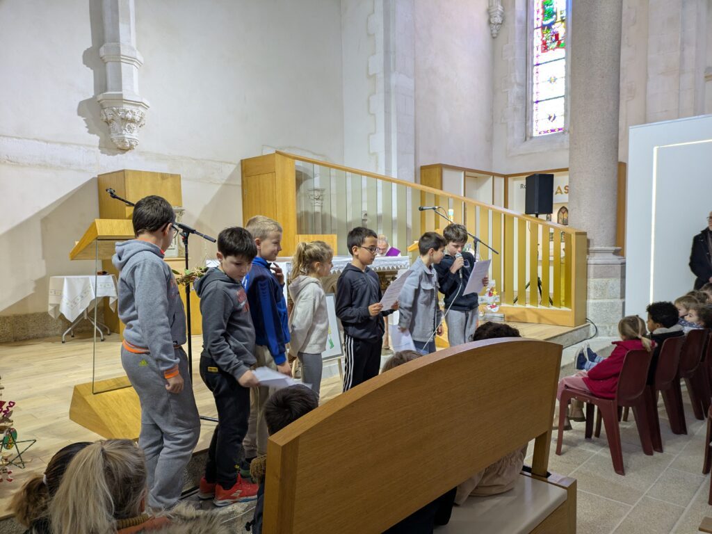 Jeudi, les élèves de Saint Hilaire se sont retrouvés dans l’église de Saint Hilaire pour la célébration de noël autour du partage.