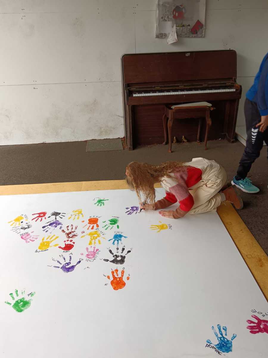 Durant cette semaine, les membres de l’APEL de l’école ont proposé aux enfants de réaliser une fresque commune : une main chacun pour un joli ENSEMBLE.