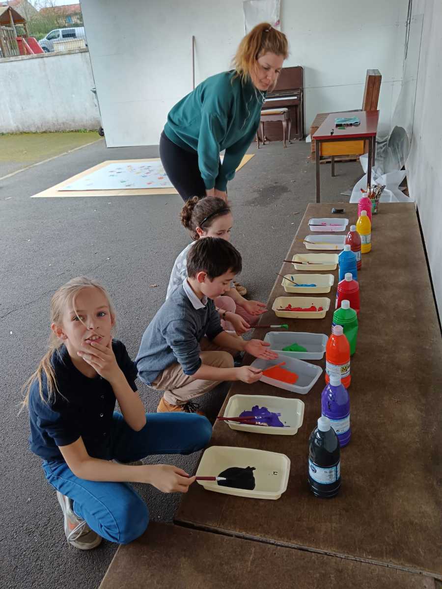 Durant cette semaine, les membres de l’APEL de l’école ont proposé aux enfants de réaliser une fresque commune : une main chacun pour un joli ENSEMBLE.