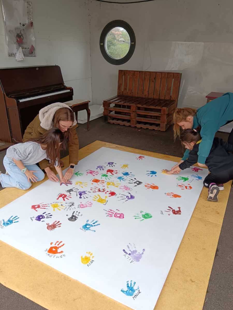 Durant cette semaine, les membres de l’APEL de l’école ont proposé aux enfants de réaliser une fresque commune : une main chacun pour un joli ENSEMBLE.