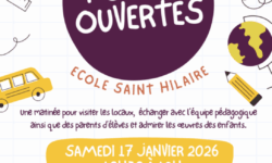 L’école fait ses portes ouvertes le samedi 17 janvier 2026 de 10H30 à 12H. Ces portes ouvertes sont pour les nouvelles familles d’enfants nés en 2023 afin de visiter les locaux et rencontrer l’équipe pédagogique et des parents d’élèves. Elles sont proposées également pour les familles actuelles de l’école afin…